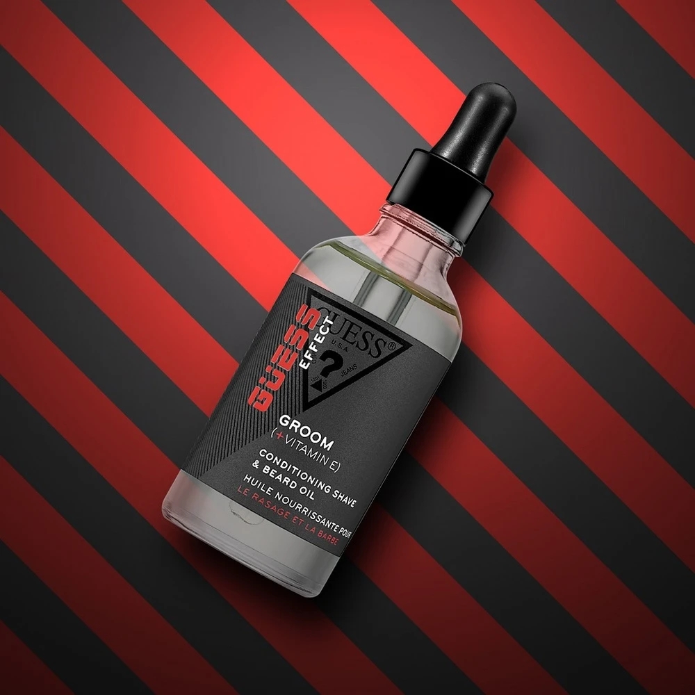 L’huile nourrissante pour le rasage et la barbe de la collection de soins haute performance GUESS EFFECT pour l’homme confiant et actif.
